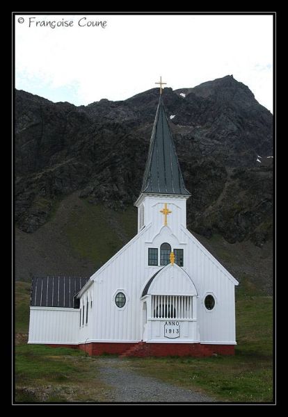 • Eglise du Chasseur de baleines (Whaler's Church), bâtiment en bois, préfabriqué en Norvège et ouvert au culte en 1913.